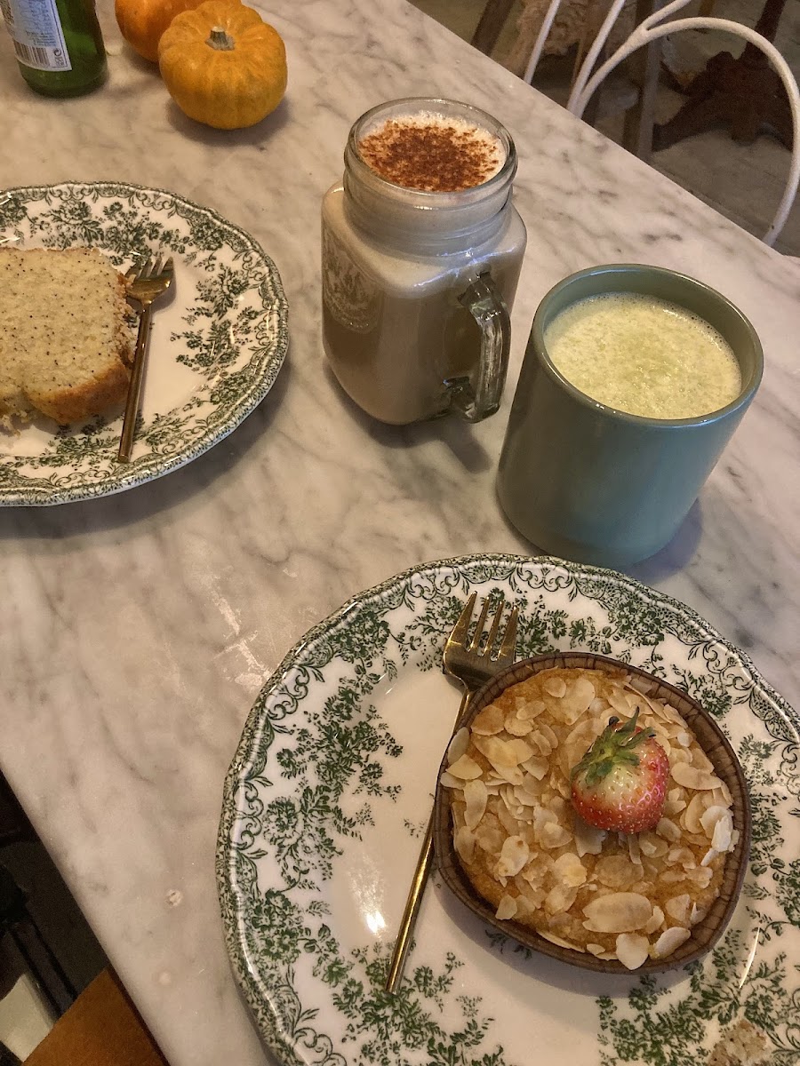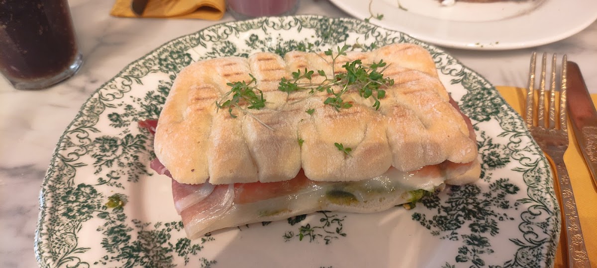 The menu leans on thoughtfully made drinks like Matcha Latte, Pumpkin Spice Latte, and classic coffee options including Latte Macchiato. Pastry selections like banana pie and the pistachio cake offer substantial treats — the apple cake portion notably comes generous. For something more savory, grilled sandwiches with mozzarella and Parma ham or avocado toasts are popular picks, making this a good stop for a light lunch as well as your caffeine fix.